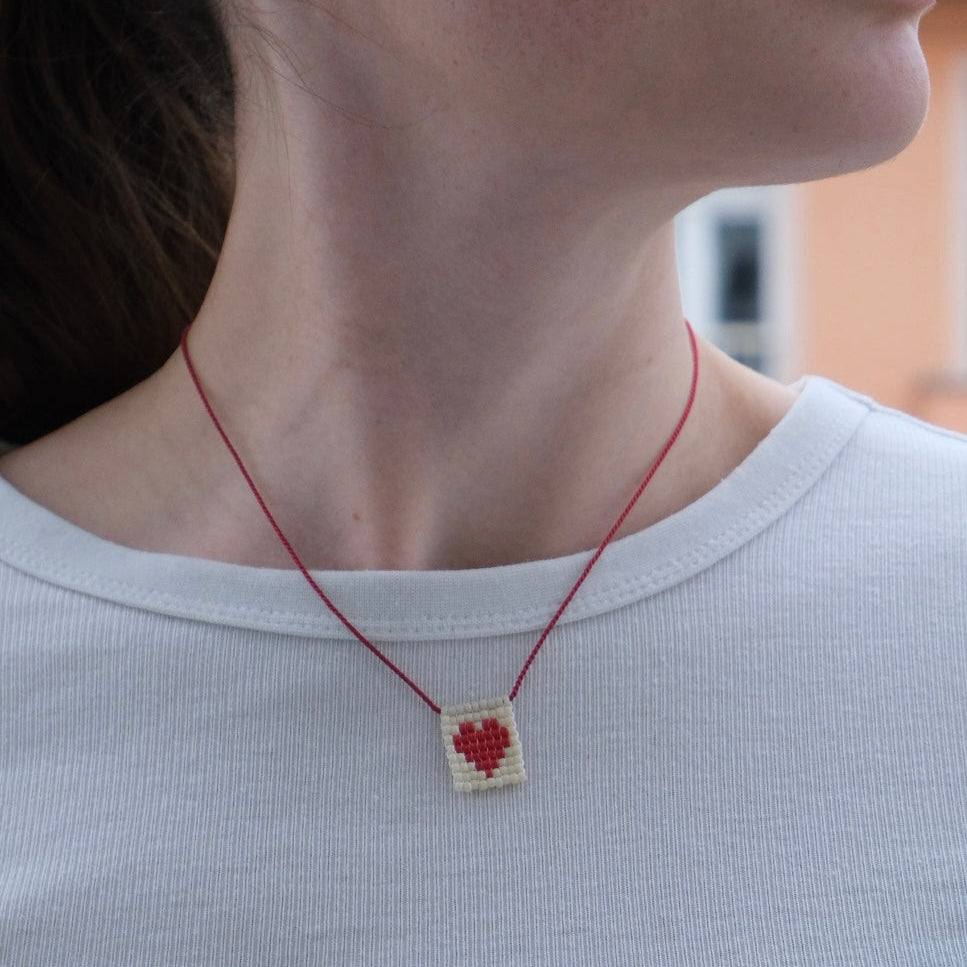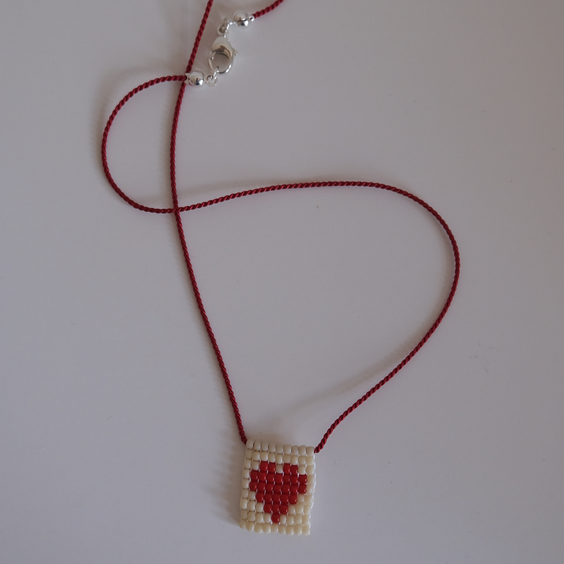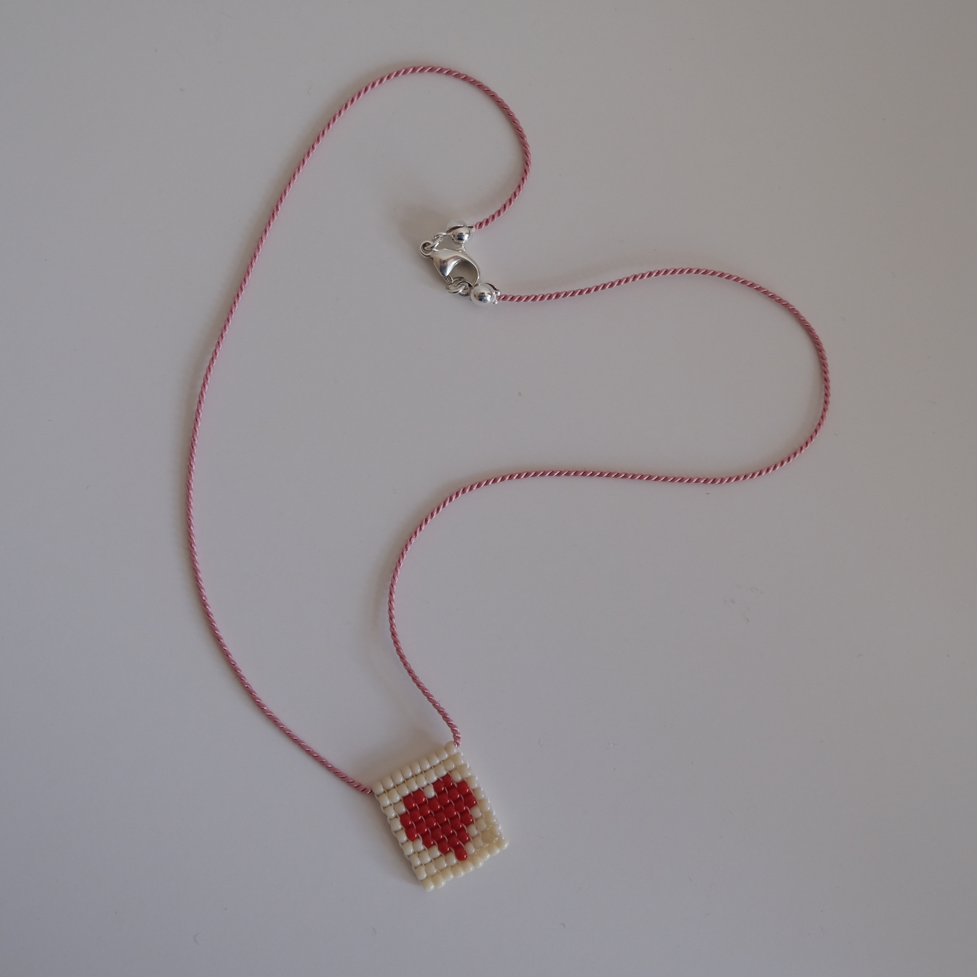 Der Anhänger wird aus hochwertigen Glasperlen von Hand gefertigt und auf ein Band aus 100 % Naturseide aufgefädelt. Zur Auswahl stehen zwei Farben. Der Verschluss besteht aus 925er Sterlingsilber.